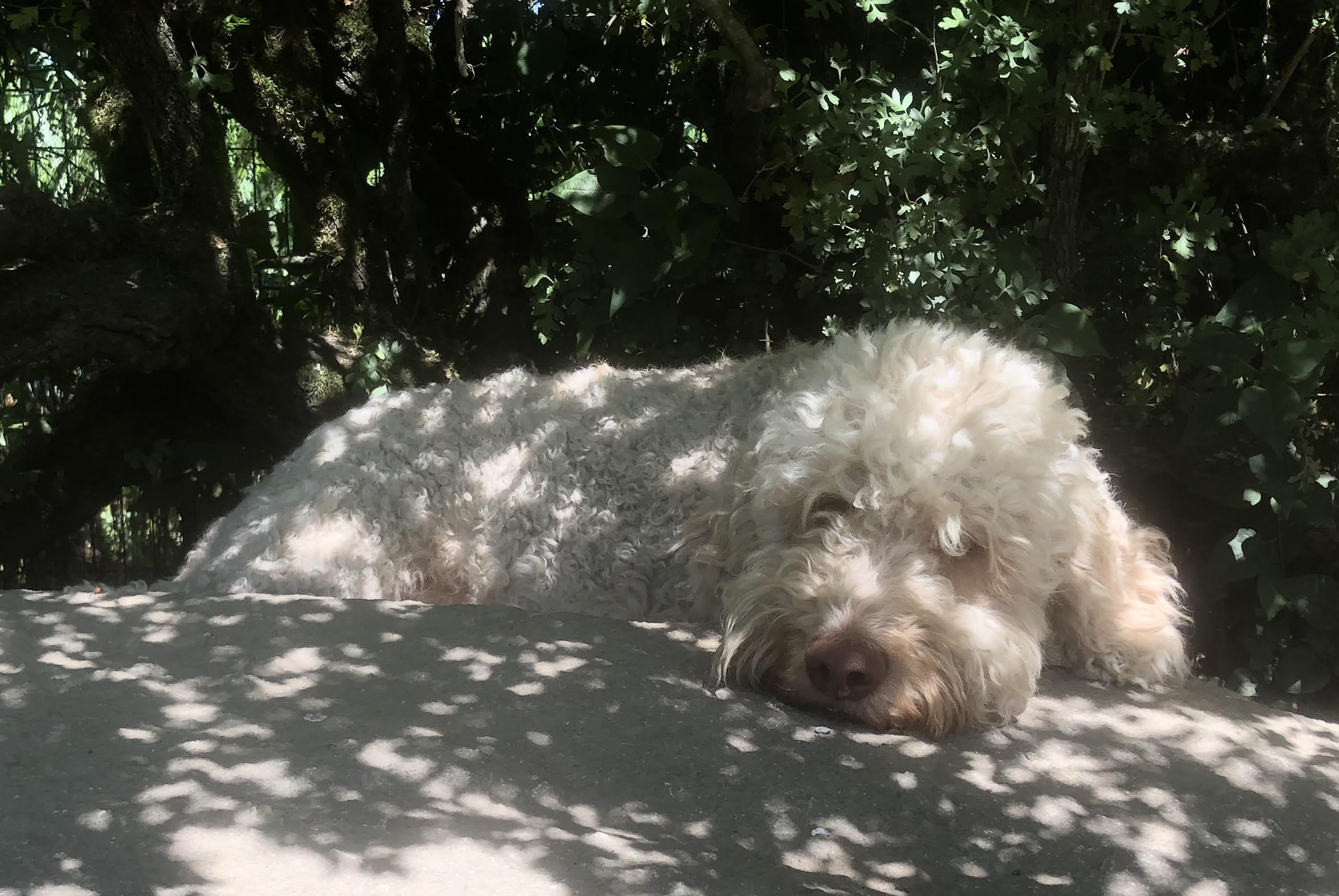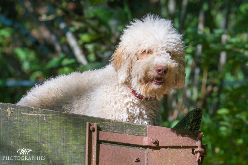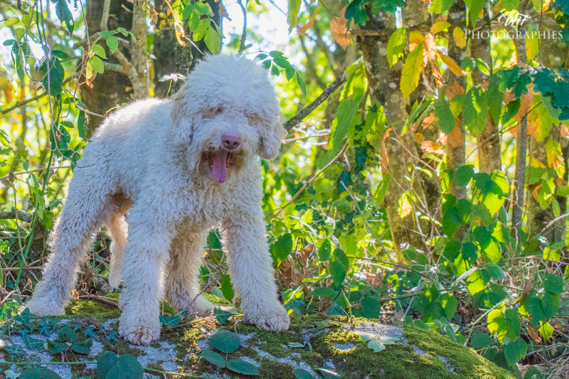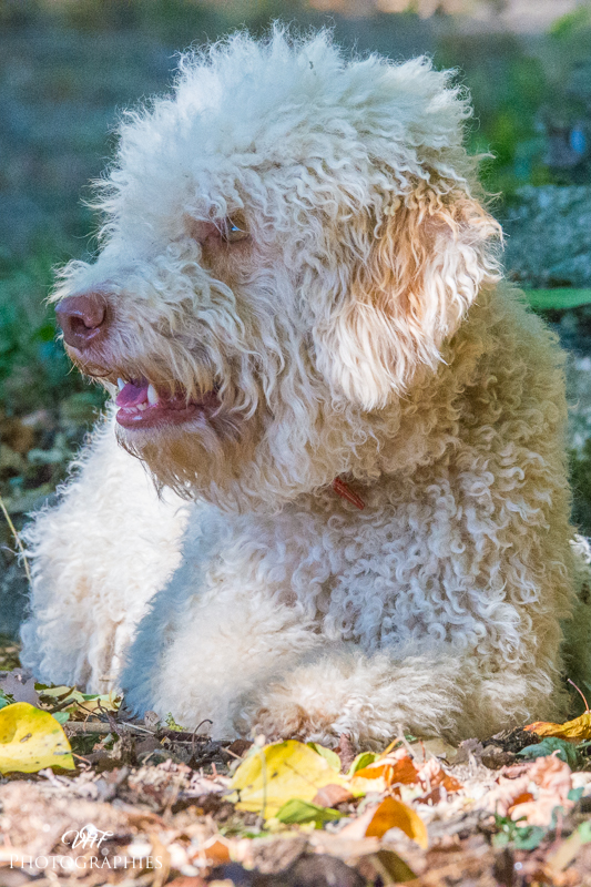 BIBOU est un "grand" Lagotto, très tendre, très proche de sa maîtresse. Sa grande caractéristique: un "flegme" à toute épreuve! Il aime bien aller travailler à la recherche de truffes, alliant précision et flegme...un beau travail mais à son rythme. Dans la meute, BIBOU s'impose placidement avec quelques grognements aux autres mâles...mais jamais avec agressivité. Il a sa place d'étalon à assurer!
