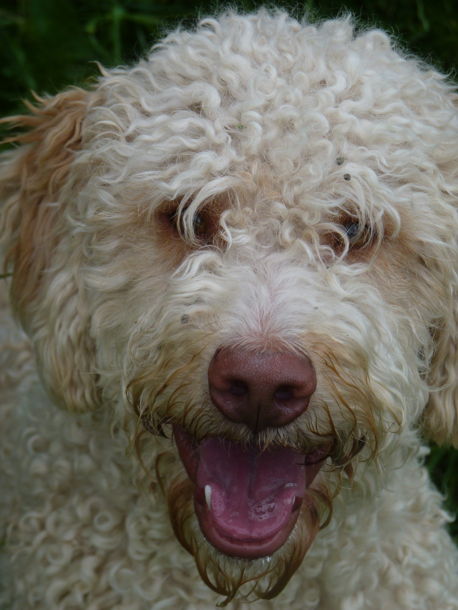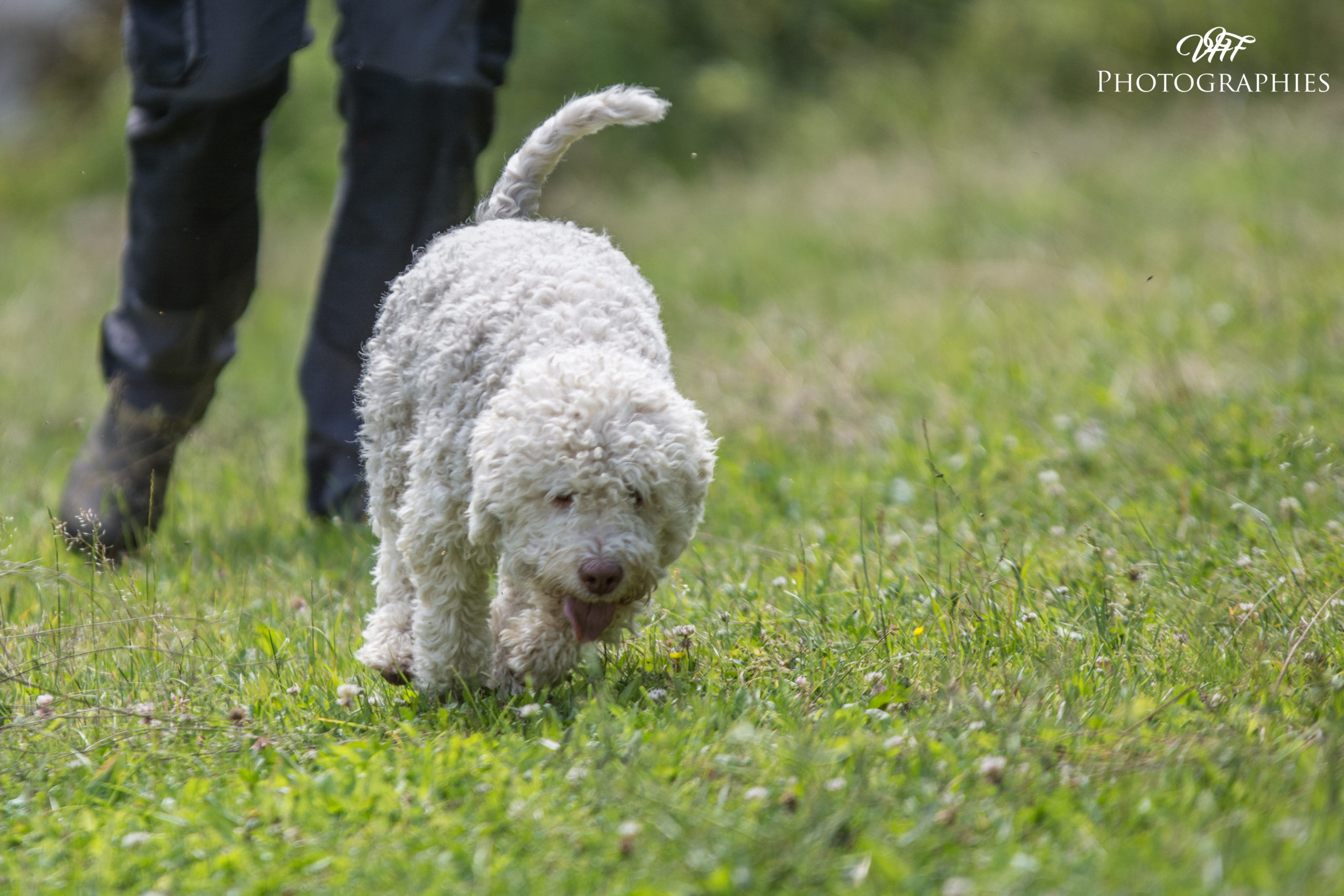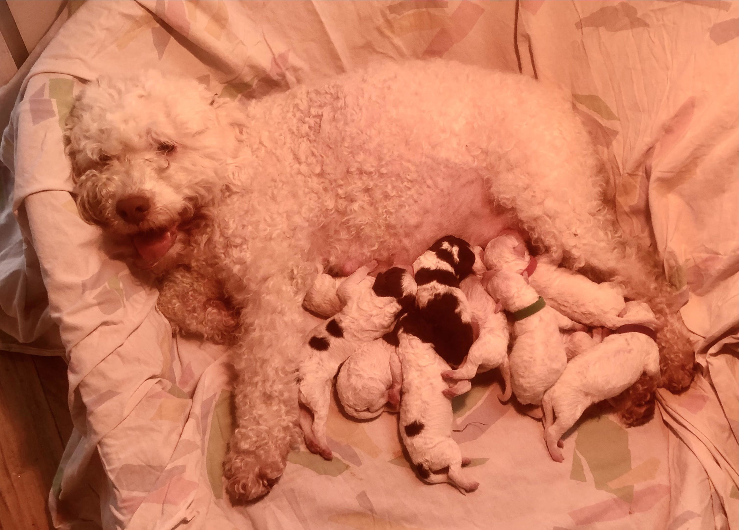 Fiona est une chienne Lagotto de petite taille mais bien charpentée. Elle est très accaparante, sollicite beaucoup ses maîtres, douce... mais assez gardienne. Dans la meute, elle sait se faire discrète...et elle aime beaucoup se faufiler dans la maison! Fiona est une bonne mère avec ses petits mais elle ne voit pas d'inconvénient pour se faire aider par les autres femelles pour la gestion de ses petits. Faut dire qu'elle nous a offert de belles portées!